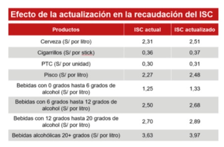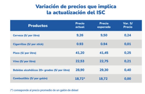 La variación experimentada del monto fijo del ISC para estos productos, en términos de variación del precio, no resulta ser significativa. Es importante también señalar que es decisión del productor transferir la actualización del ISC al consumidor.